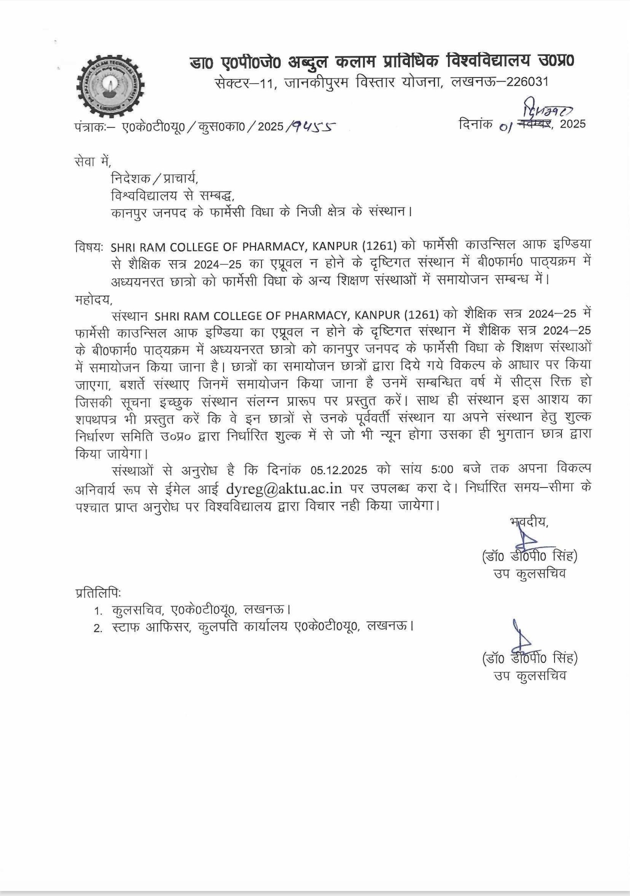 - ईमेल: idyreg@aktu.ac.in