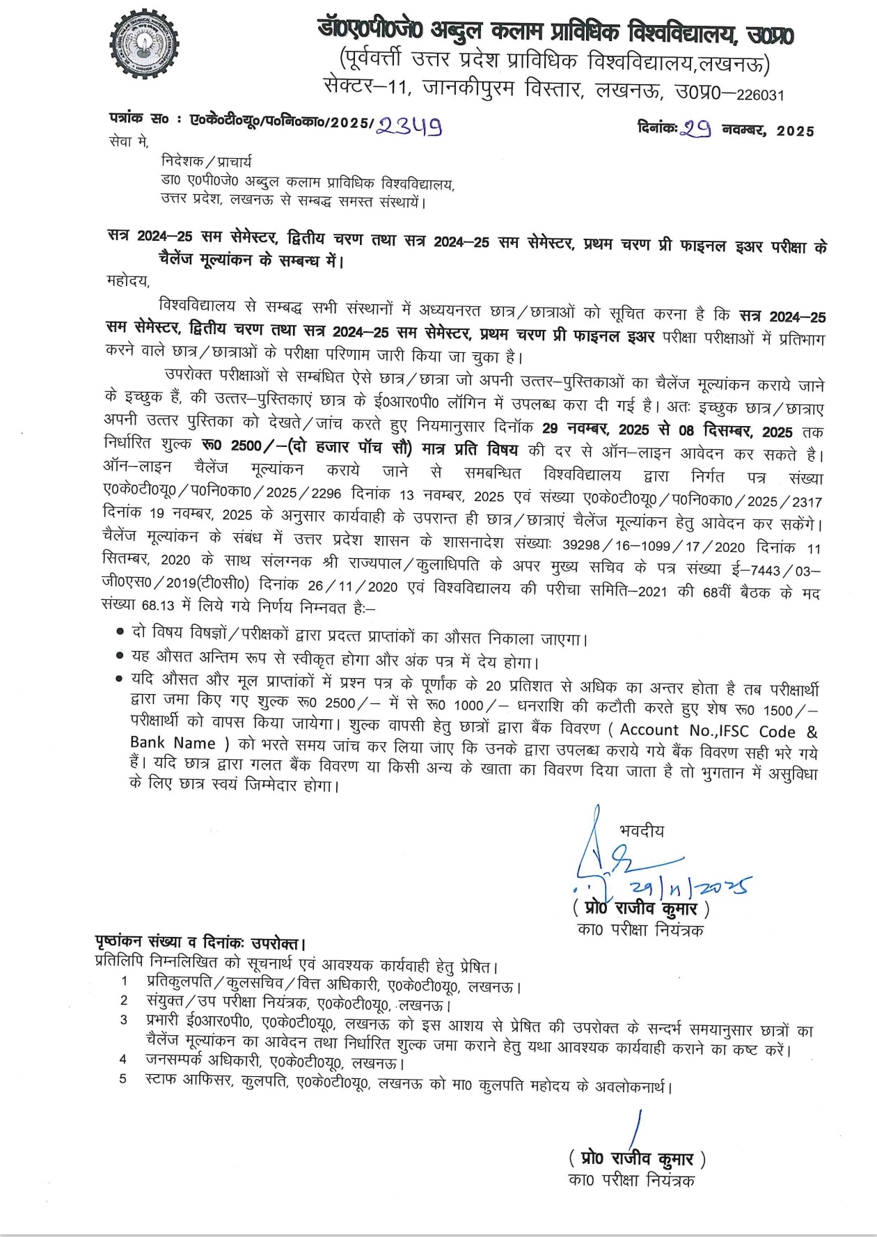 AKTU प्री-फाइनल ईयर रिजल्ट में बैक? चैलेंज इवैल्यूएशन का आखिरी मौका 8 दिसंबर तक – ₹2500 में मार्क्स बढ़वा लें वरना साल बर्बाद!
