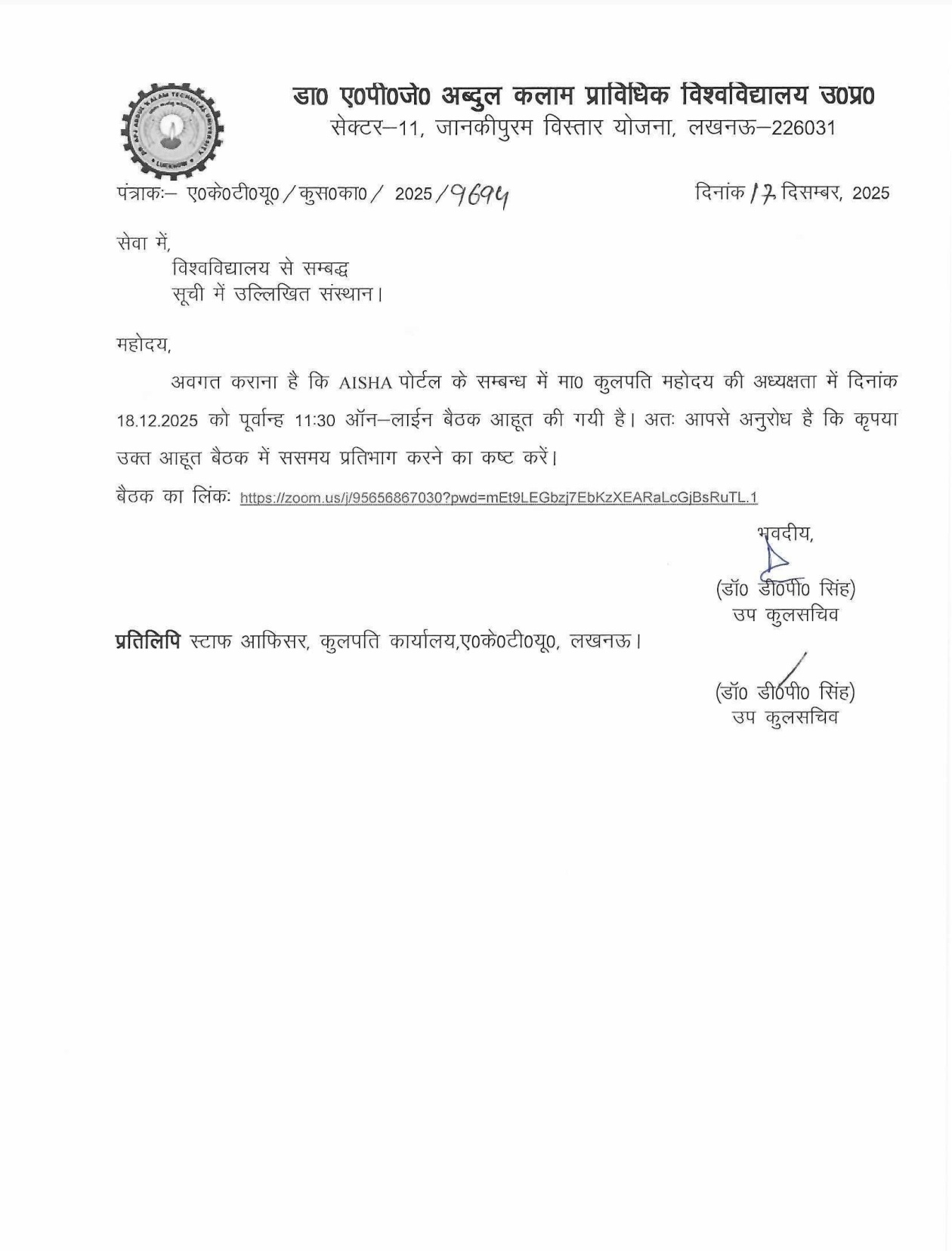 | सर्कुलर ID | AKTU/कायालय/2025/9694 (12.12.2025) |