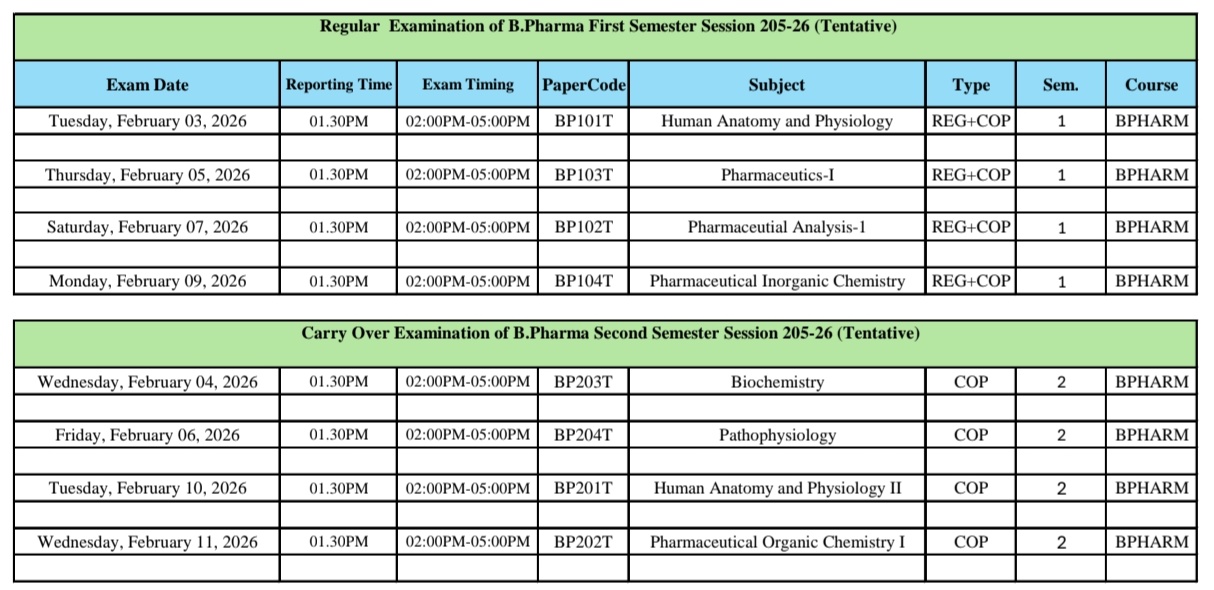 AKTU New Update B.Pharm Students Exam Schedule 2025-26 ओड सेमेस्टर एग्जाम शेड्यूल टेंटेटिव