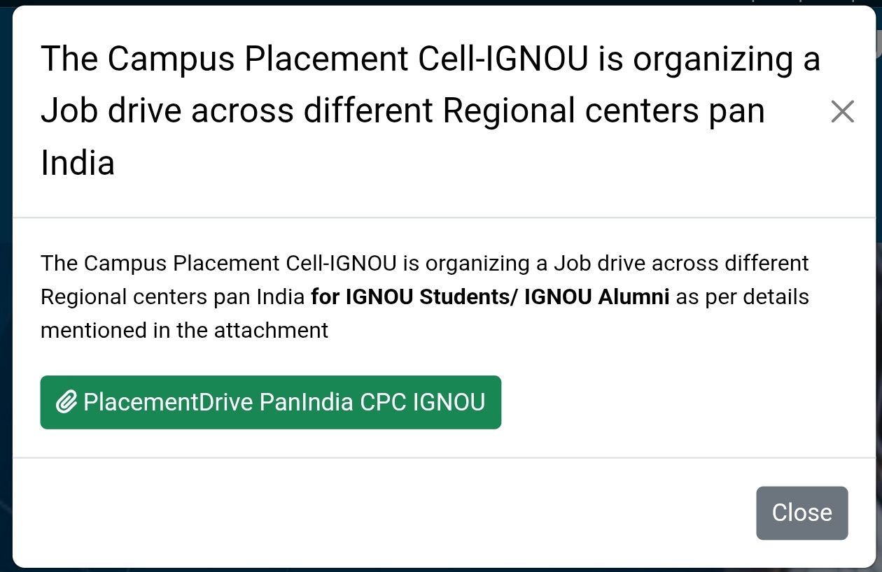 भाई, अगर तुम IGNOU से UG/PG/Diploma/MBA कर रहे हो या पास आउट हो, तो ये तुम्हारा सुपर गोल्डन चांस है! IGNOU का Campus Placement Cell पूरे भारत में जॉब ड्राइव आयोजित कर रहा है। सिर्फ 3-4 दिन बाकी हैं – 10 से 13 फरवरी 2026 तक कर्नाटक, महाराष्ट्र और उत्तराखंड में अलग-अलग रीजनल सेंटर्स पर।